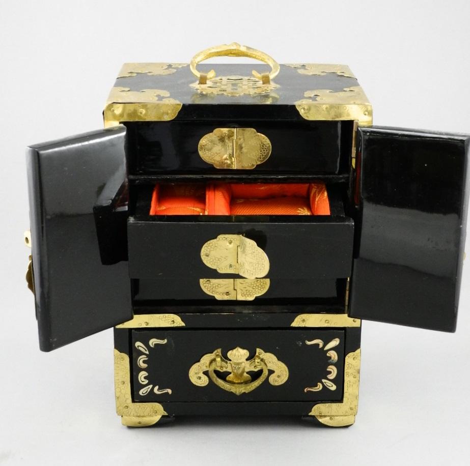 LOT 645 Chinese lacquered mother of pearl inlaid jewelry box. Estimate: $30 - $50 Sold For: $35 Auction Date: Tuesday, August 25 2015 at 6:00 PM