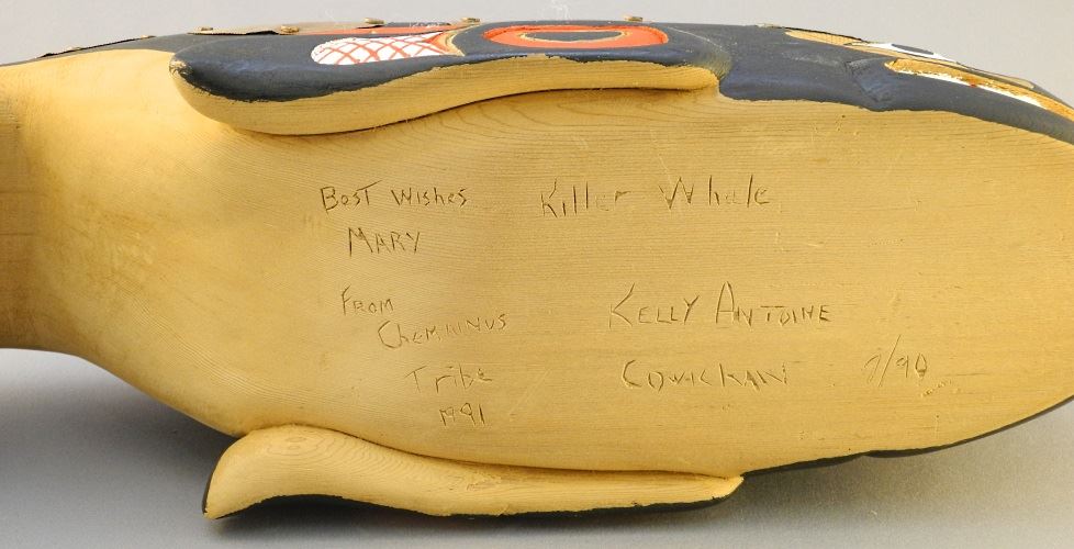 LOT 412 Native carved cedar killer whale bowl with lid signed Kelly Antoine, 16". Estimate: $125 - $175 Sold For: $310 Auction Date: Tuesday, November 17 2020 at 6:00 PM