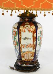 Japanese Imari porcelain table lamp, 28" high.