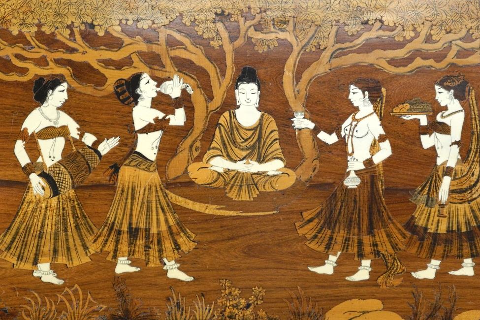 Rosewood & other inlaid wooden wall panel.
