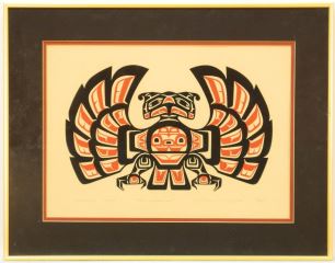 LOT 26 serigraph signed Clarence Wells '77, #5/200, 10 1/4" x 14 1/4", "Thunderbird". Estimate: $100 - $150 Sold For: $130 Auction Date: Tuesday, February 09 2021 at 6:00 PM