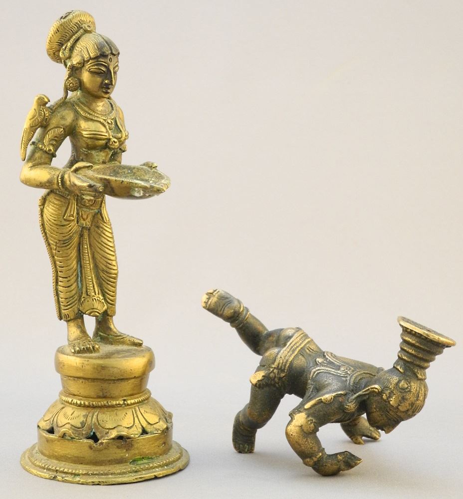 LOT 200 2 Chola style Indian Bronze Figures, 2 7/8" & 6 1/8" high. Estimate: $120 - $180 Sold For: $100 Auction Date: Tuesday, April 13 2021 at 6:00 PM