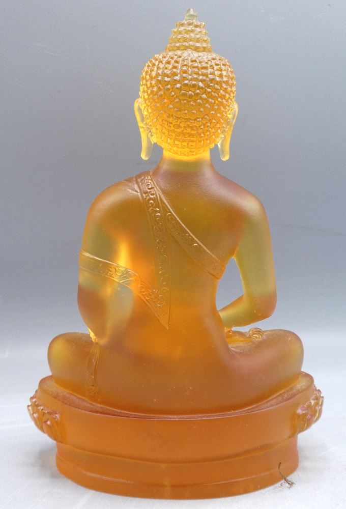 Russet Glass Seated Figure of "Gautama Buddha", 8 1/2" high.