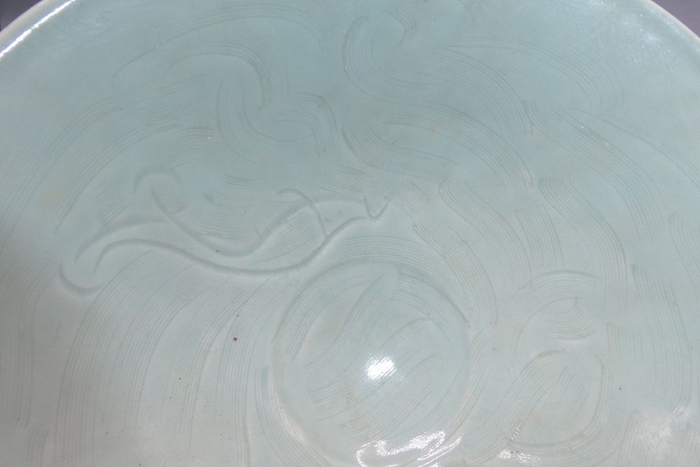 Creamy White Glazed "Fish Pond" Bowl, 8 5/8" diameter.