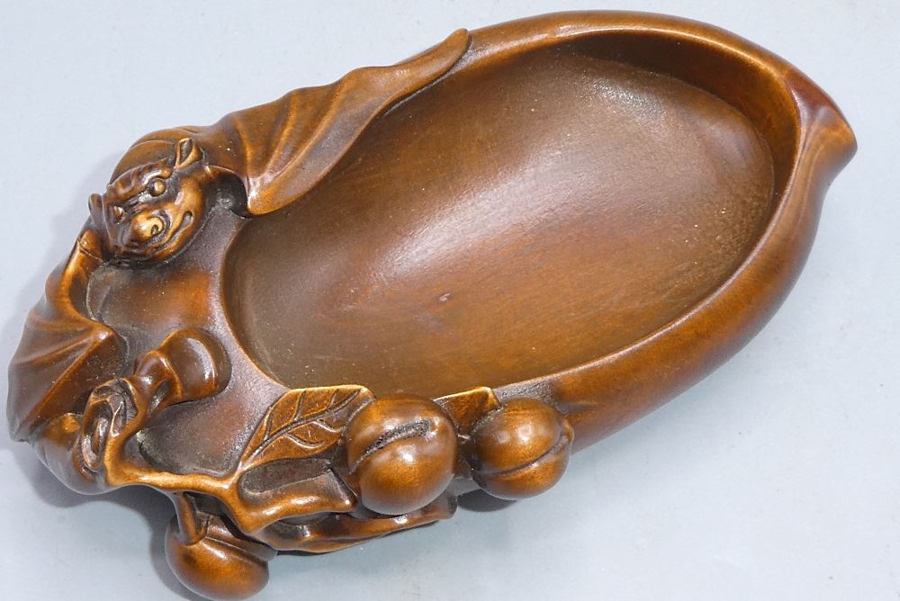 Chinese Boxwood "Bats & Peach" Brush Wash, 5" length.