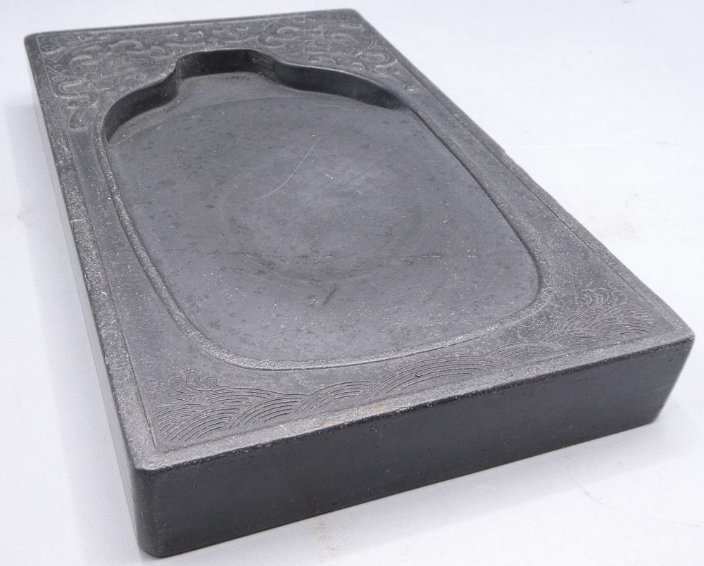 Rectangular "Dragon Clouds" Dark Duan Ink Stone, 9 1/4" length.