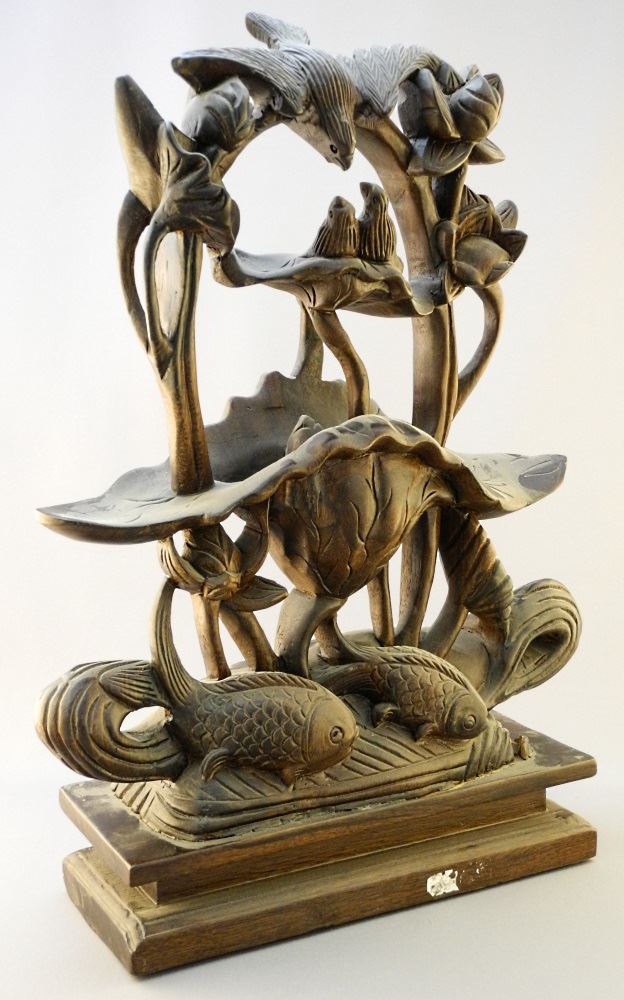 Chinese Rosewood Lotus Carving, 18", split noted.