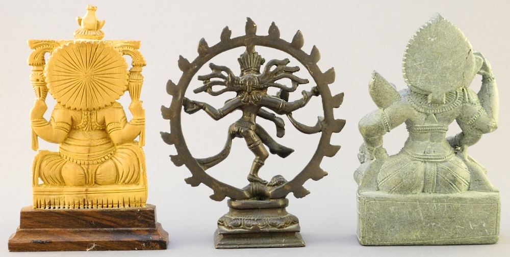 LOT 169 3 Indian Deities: Wood / Stone / Metal, 6" high. Estimate: $50 - $60 Sold For: $50 Auction Date: Tuesday, June 01 2021 at 6:00 PM