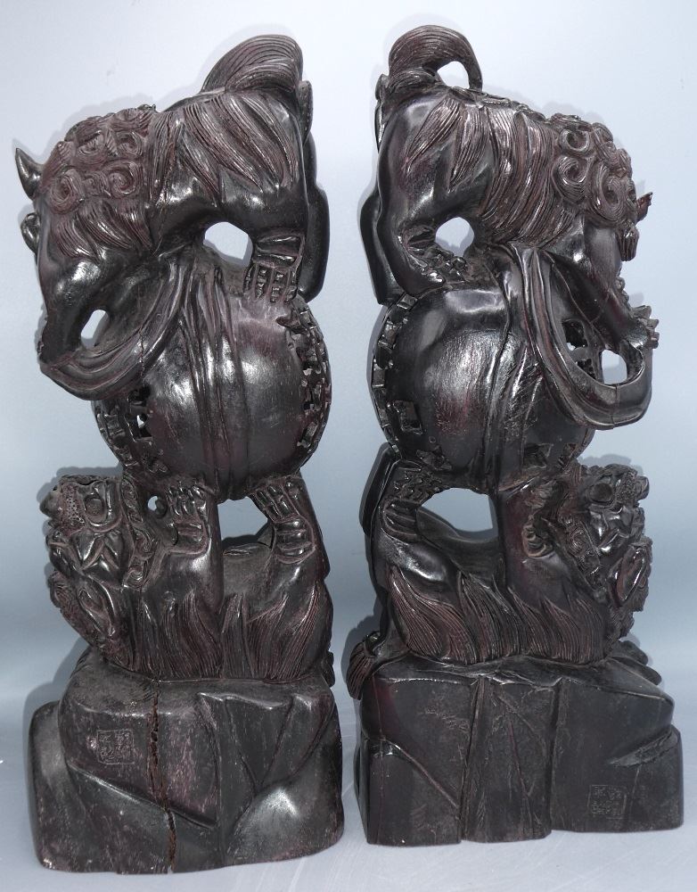 LOT 171 Pair of Openwork Tan Wood "Dragon Pearl Sculptures, Ch'ieng-lung Mark, 19 1/2" high. Estimate: $300 - $400 Sold For: $975 Auction Date: Tuesday, June 01 2021 at 6:00 PM