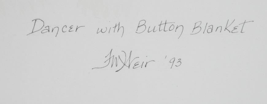 Watercolour signed F.W.Weir dated 1993, 19" x 15", "Dancer with Button Blanket".