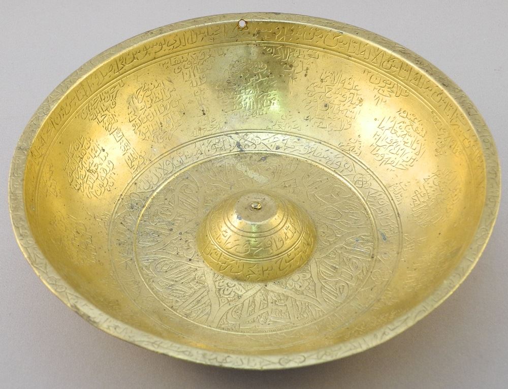Persian Brass "Magic" Bowl, 7 1/4" diameter.