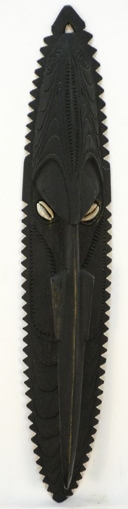 Papua New Guinea Cowrie Inlaid Ebonized Wood Plaque, 28" high.