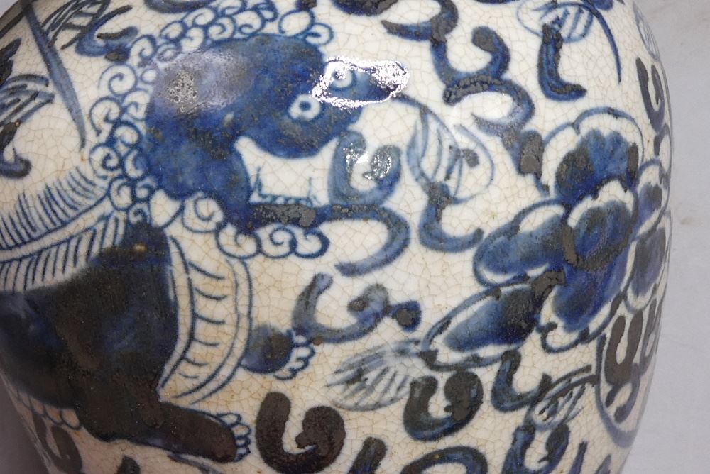 LOT 121 Blue & White "Kirin Beast" Ginger Jar, bearing Heaven Mark, 6 1/2"h. Estimate: $150 - $200 Sold For: $70 Auction Date: Tuesday, August 17 2021 at 6:00 PM