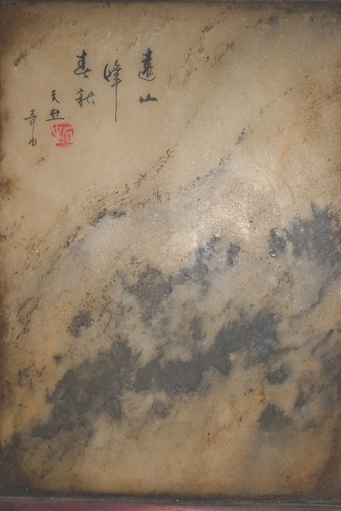 Framed "Misty Mountain" Scholar Screen on Stand, 11 1/2" high.