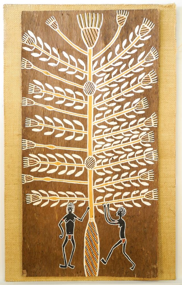 LOT 173 3 Australian Bark Paintings, each approximately 31" high. Estimate: $200 - $300 Sold For: $380 Auction Date: Tuesday, August 17 2021 at 6:00 PM