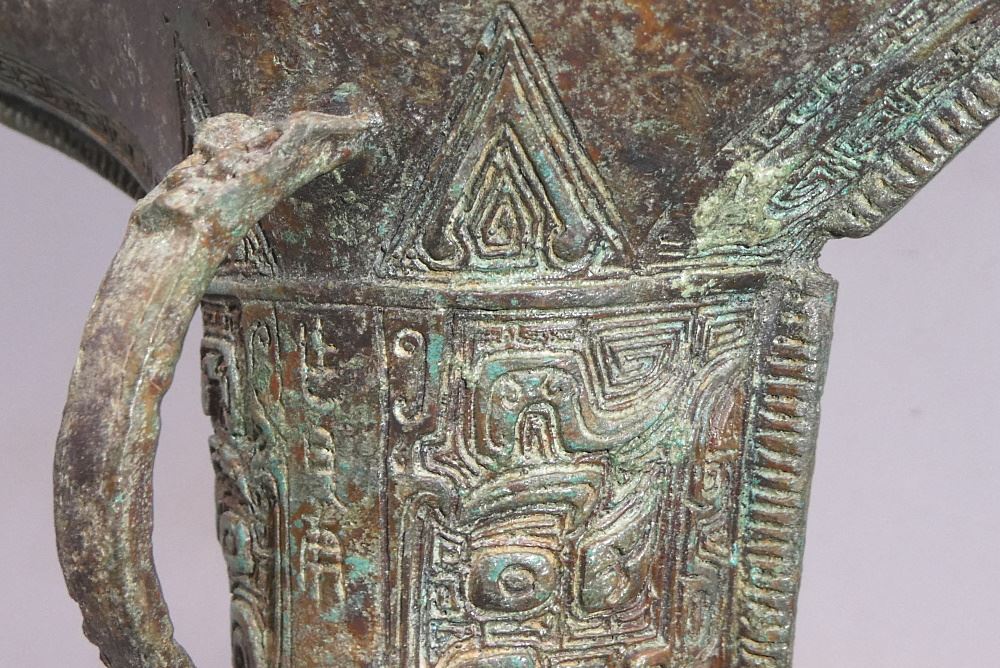 LOT 91 Archaic Bronze Ritual Tri Foot Wine Vessel, 7 1/4" high. Estimate: $175 - $200 Sold For: $80 Auction Date: Tuesday, August 17 2021 at 6:00 PM