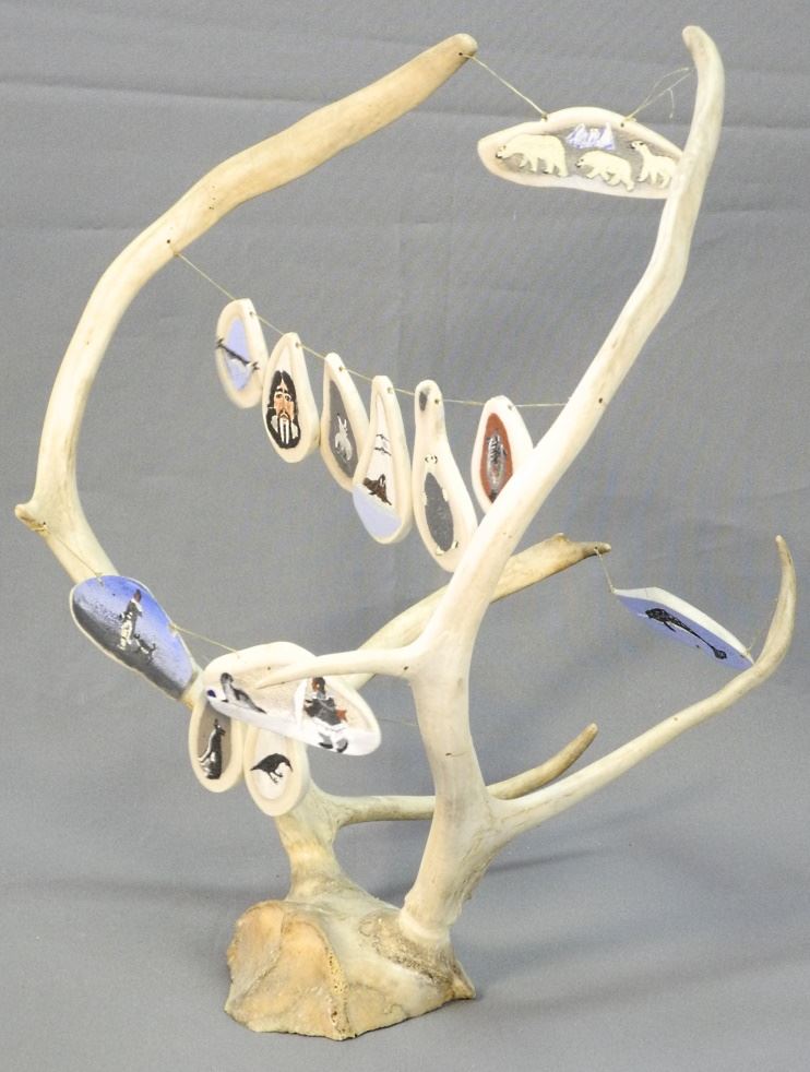 Antler Sculpture with Painted Antler Sections, Unsigned, 16" x 12 1/2" x 12".