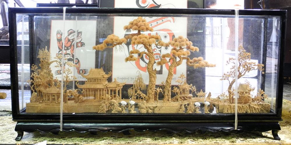 LOT 83 Pair of Chinese Cork Dioramas, 23 3/4" wide, 11 1/2" x 23 1/2" x 4 1/4" with original foam Estimate: $100 - $200 Sold For: $90 Auction Date: Tuesday, August 17 2021 at 6:00 PM