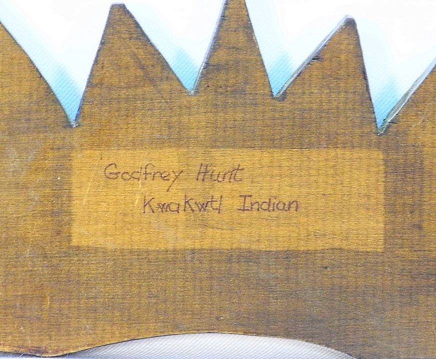 North West Coast "Sisiutl" Plaque Signed Godfrey Hunt, restoration, 22 1/4" wide.