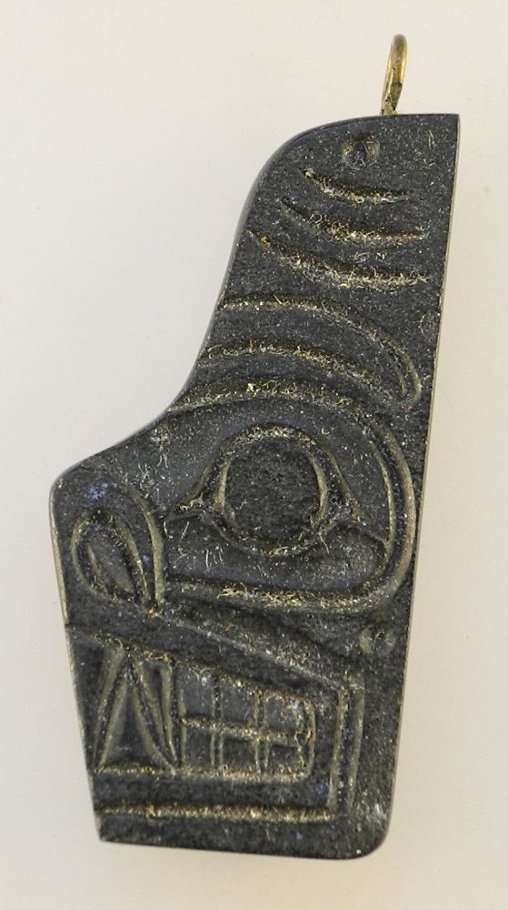 Haida Argillite "Shark" Pendant, Double Sided, Signed Medric Jones, 1 1/2" high.