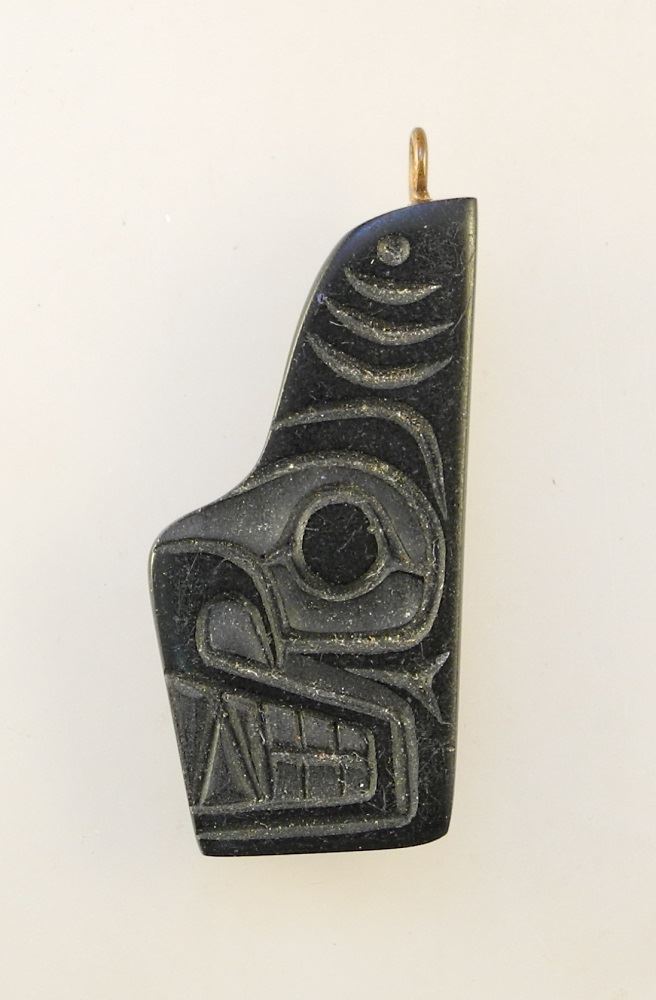LOT 255 Haida Argillite "Shark" Pendant, Unsigned, Attributed to Medric Jones 1 3/8" high. Estimate: $50 - $70 Auction Date: Tuesday, August 17 2021 at 6:00 PM