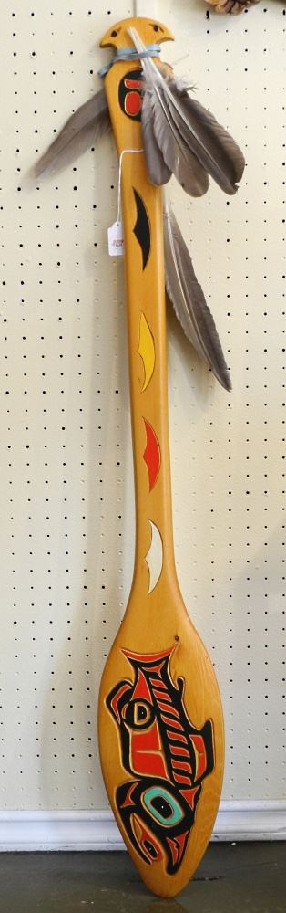 LOT 2 NW Coast cedar Salmon Paddle signed Chagoun, 46" length. Estimate: $100 - $200 Sold For: $150 Auction Date: Tuesday, August 17 2021 at 6:00 PM