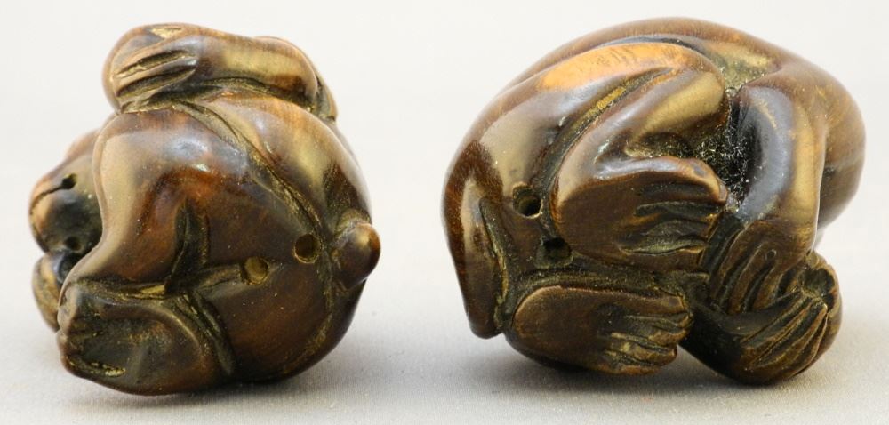 2 Japanese Carved Wood "Monkey" Netsukes, 1 1/2" high.