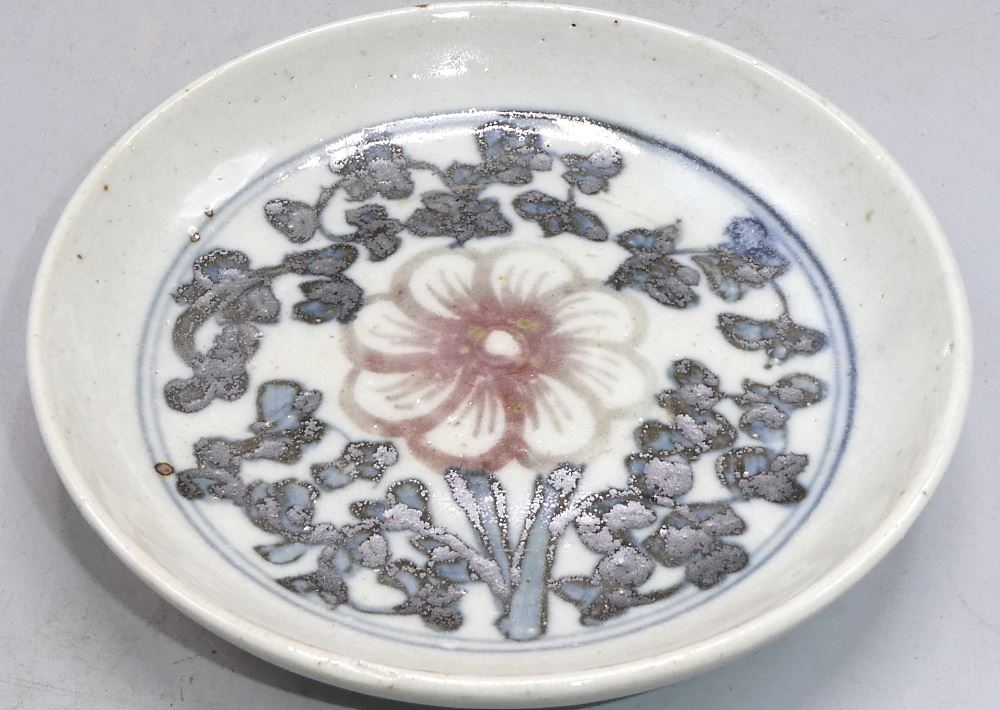 Blue & Red "Buddhism Blossom" Dish, 5" diameter, 20th C.