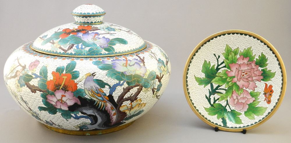 LOT 278 Chinese White Ground Cloisonne Covered Bowl, 7 1/2" high & a Similar Dish. Estimate: $100 - $150 Sold For: $110 Auction Date: Tuesday, October 05 2021 at 6:00 PM