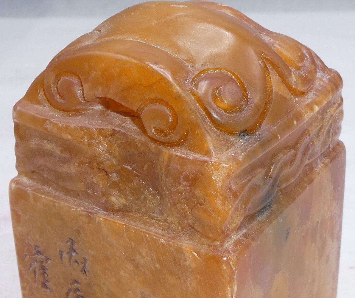 Yellow Soap Stone "Tenwan" Stone Seal, 3 1/2" x 2", 20th C.