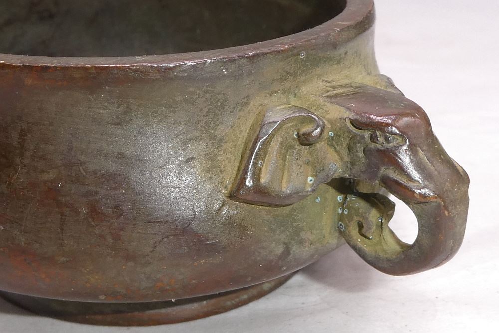 Heavy Bronze Elephant Handle Censer, 4 1/4" diameter, 20th C.