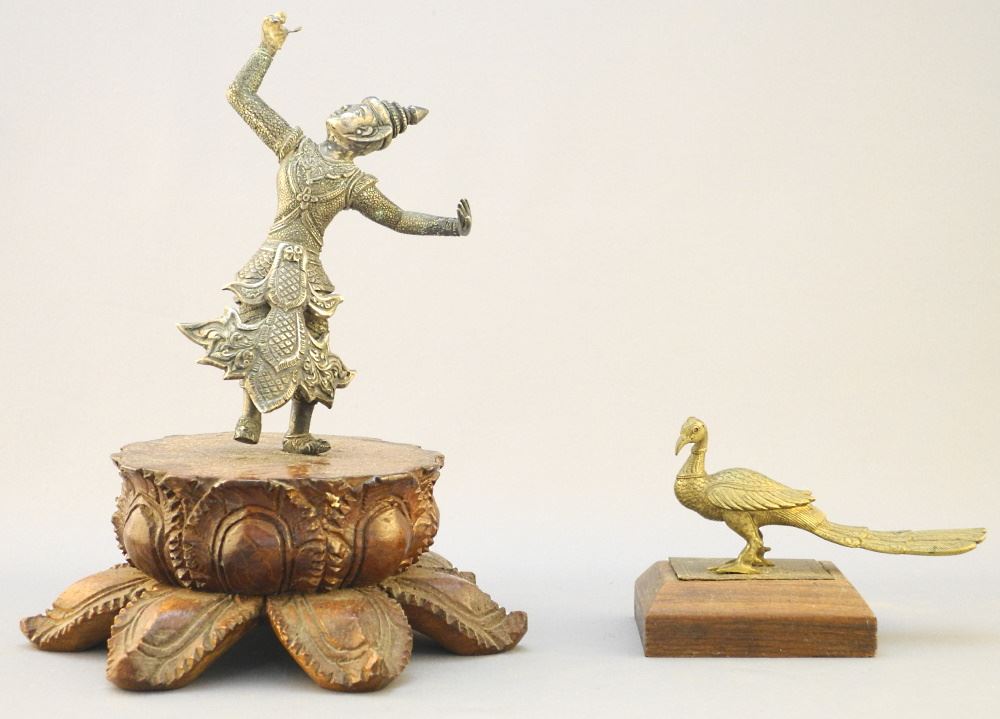 3 Eastern Brass Figurural Castings on Bases, 12 1/4".