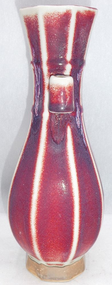 Iron Red Dual Ears Vase, 9 1/2" high, 20th C.