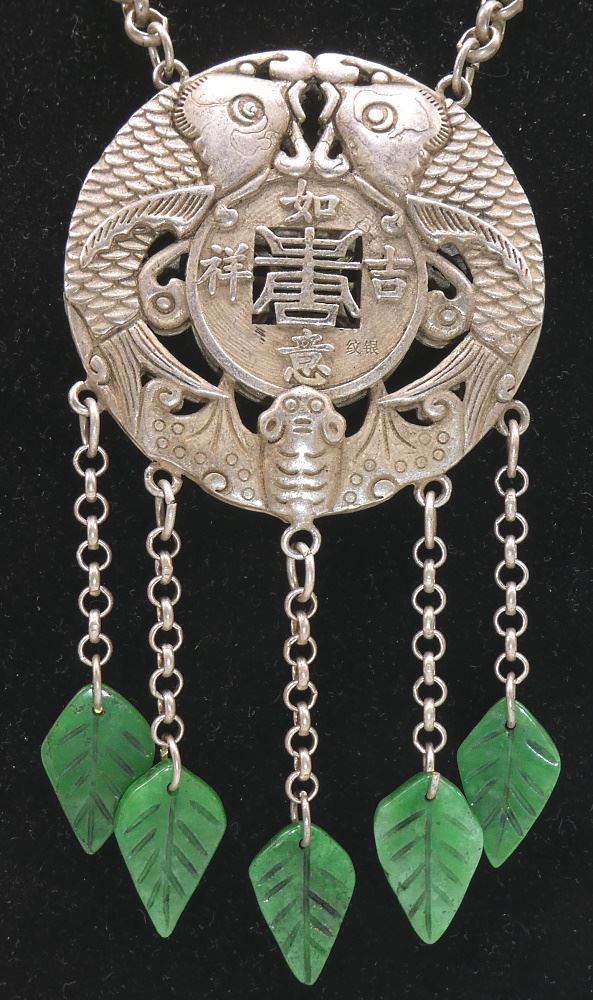 Southern Asia "Fish & Bat" Prayer Necklace, 16 1/2" length, 2 1/2" pendant.