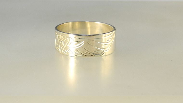 Kwagiulth Silver Ring Monogrammed JL (John Lancaster), "Thunderbird", size 9 3/4".