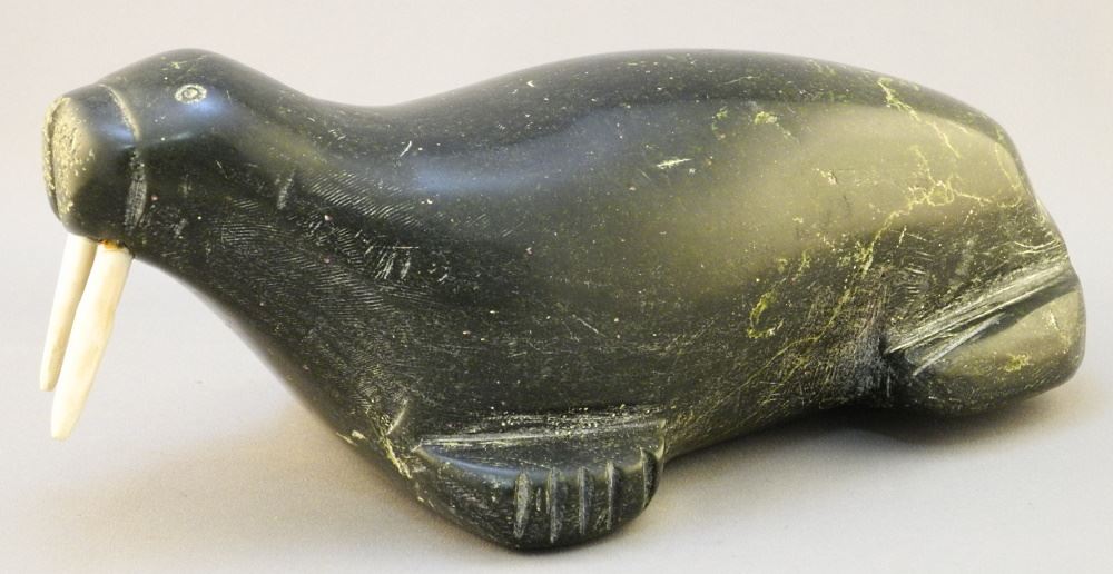 LOT 67 Inuit Stone Walrus signed E815 & with Syllabics, 9 1/2" length. Estimate: $150 - $200 Sold For: $130 Auction Date: Tuesday, November 30 2021 at 6:00 PM