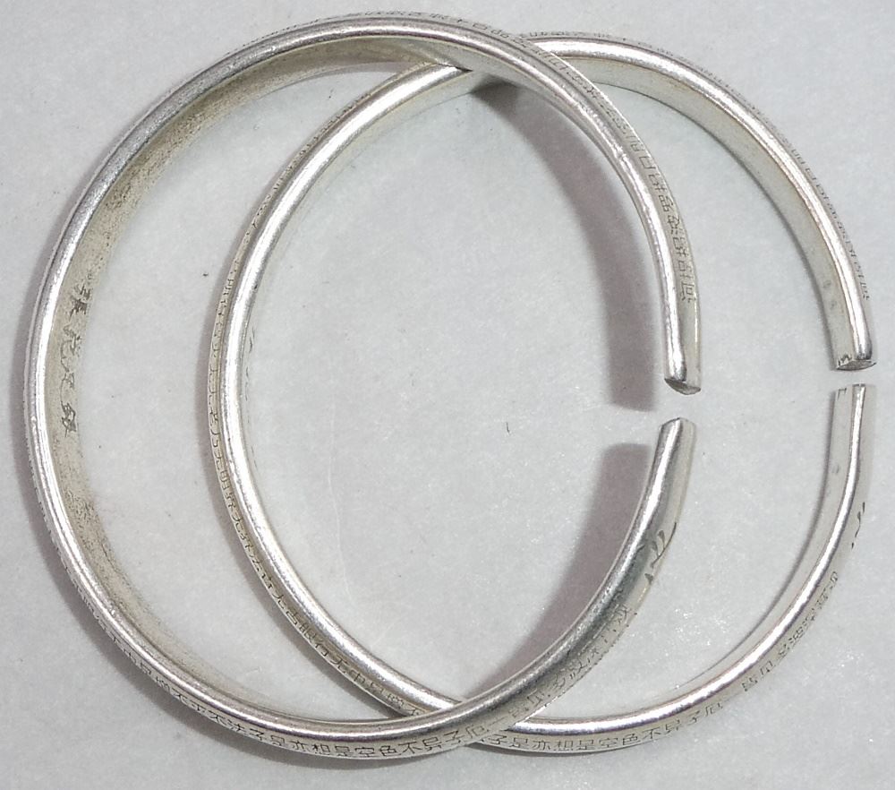 LOT 224 Pair of "Heart Sutra" Wedding Bangles, 2 3/4" diameter, 20th C. Estimate: $50 - $100 Sold For: $80 Auction Date: Tuesday, November 30 2021 at 6:00 PM