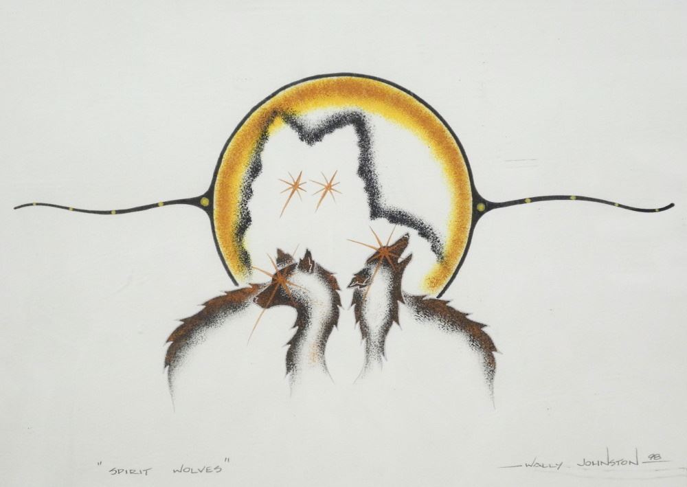 Mixed Media signed Wally Johnston 1998, 11 1/4" x 15 1/2", "Spirit Wolves".