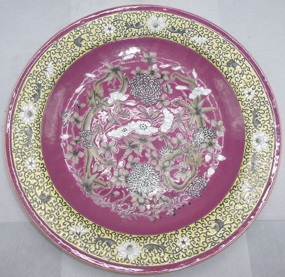 LOT 288 Famille Rose "Dragon Garden" Ritual Charger, 14 5/8" diameter, 20th C. Estimate: $200 - $400 Sold For: $220 Auction Date: Tuesday, November 30 2021 at 6:00 PM