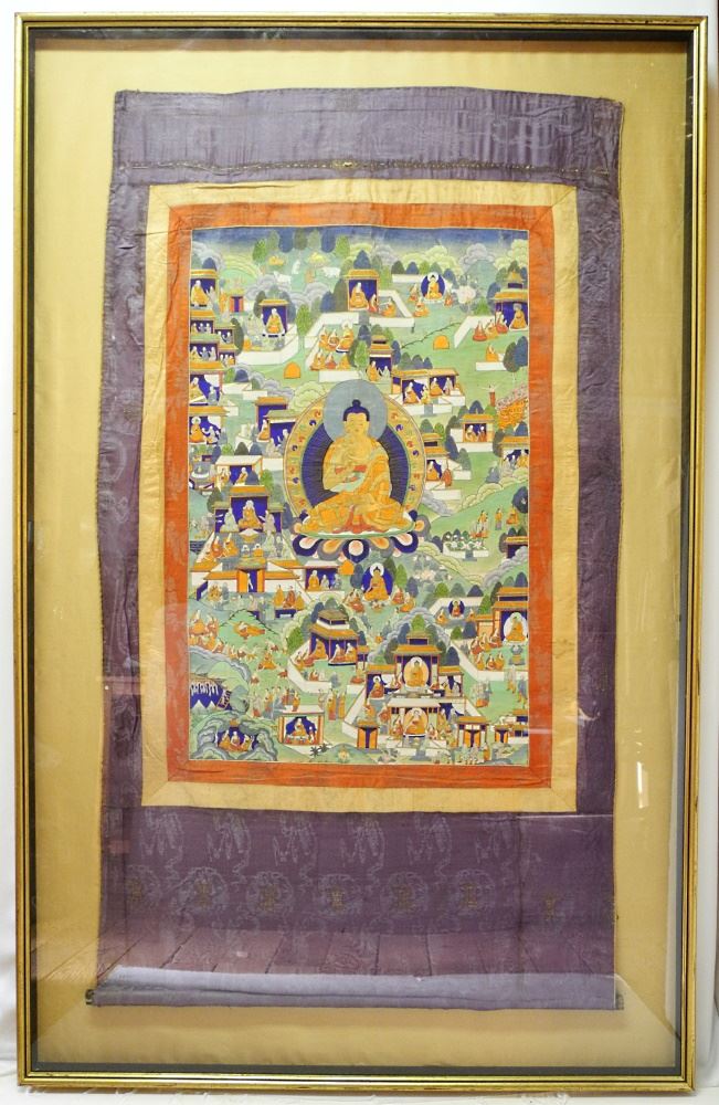 Tibetan Thangka (59" x 34 1/2") in Shadow Box Frame 68" x 43 1/2" x 3", Blessed by Rabjam Rinpoche