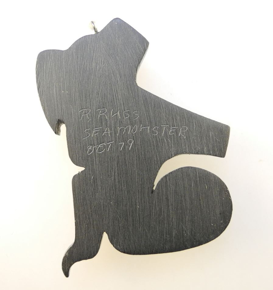Argillite "Sea Monster" Pendant Signed R. Russ, 2".
