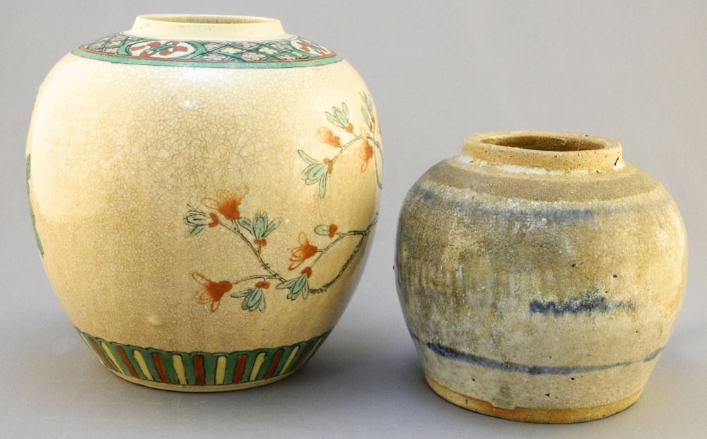 4 Chinese Pottery Pieces: Ginger Pot Bowl, Etc. Largest 6 1/2".