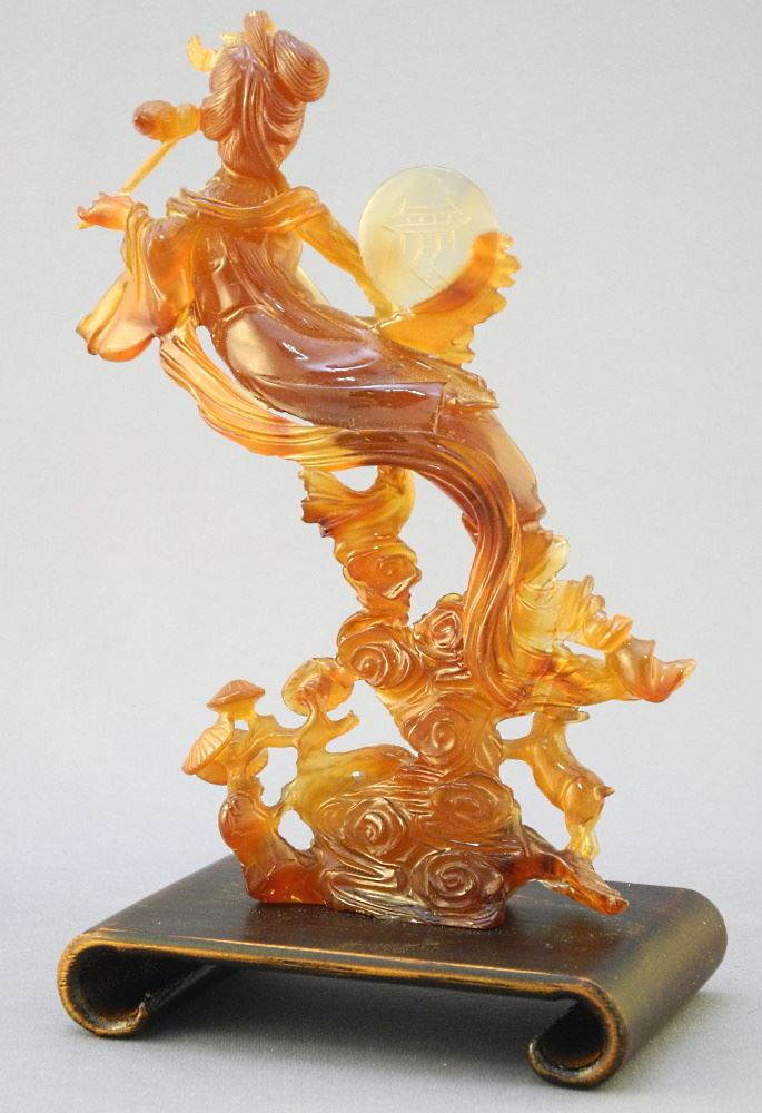 Chinese Agate "Celestial Maiden" Carving, Figure 6 1/8" High, with Stand.
