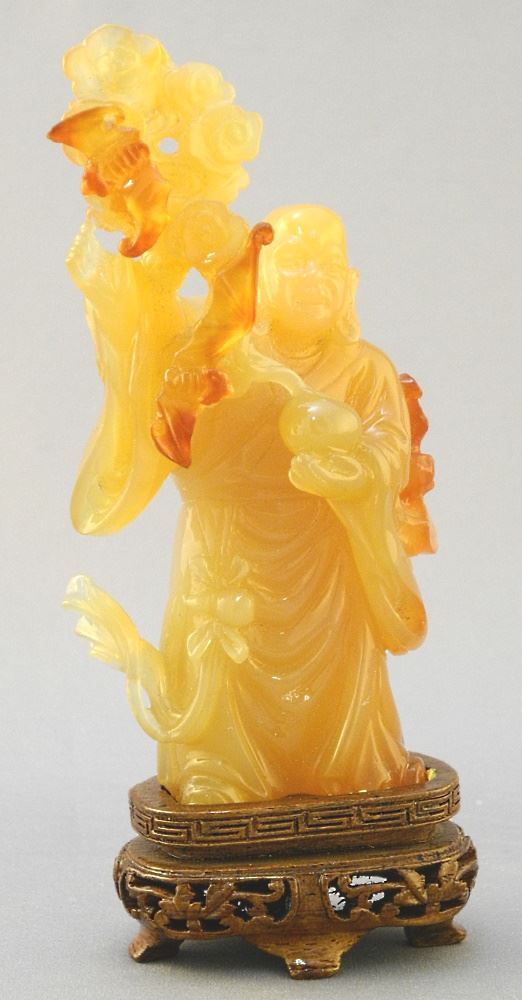 Chinese Agate "Buddha with Bats" Figure, 5" High.