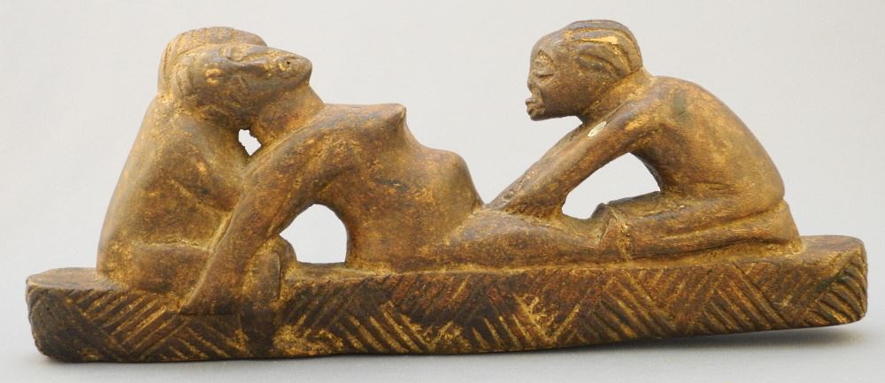 Cuban Wood Carving of a Birthing Scene, 11 1/2" Length.