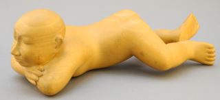 LOT 372 Indonesian Wood Carving of a Nude Boy, 7 1/2" Length. Estimate: $70 - $130 Sold For: $60 Auction Date: Tuesday, April 05 2022 at 6:00 PM