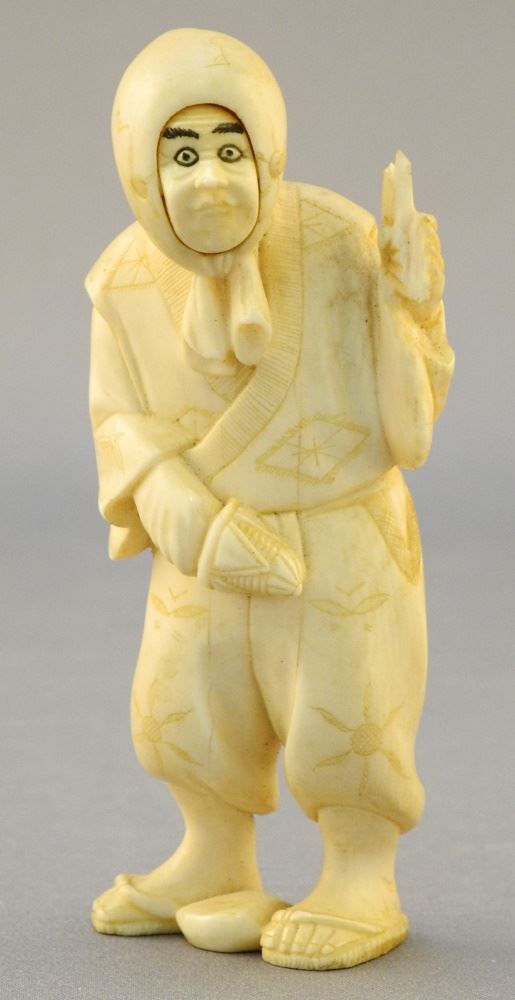 2 Carvings: Japanese Figural & an African Paginator (6 1/2"), No Export, Condition Noted.