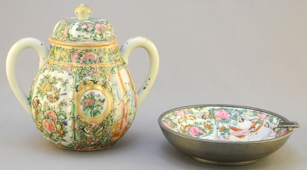 LOT 266 4 Pieces of Rose Canton: Teapot, Cream, Sugar & Ashtray, Teapot 7 3/4" High. Estimate: $150 - $200 Sold For: $240 Auction Date: Tuesday, April 05 2022 at 6:00 PM