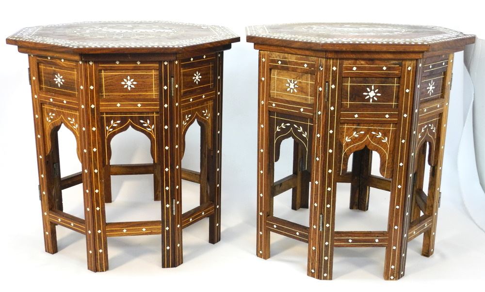 Pair of Bone Inlaid Northern Indian Side Tables.