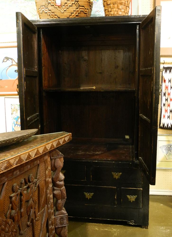 LOT 251 Chinese Black Lacquer Cabinet with Brass Butterfly Escutcheon. Estimate: $100 - $200 Sold For: $130 Auction Date: Tuesday, April 05 2022 at 6:00 PM